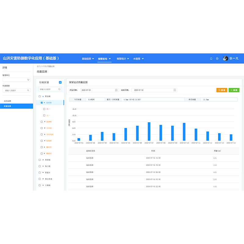 系統(tǒng)匯集了轄區(qū)內各級監(jiān)測預警平臺的實時監(jiān)測預警等各類信息,對匯集的數(shù)據(jù)進行分析整理、匯總統(tǒng)計、共享上報,為省、地市級防辦及有關部門及時掌握監(jiān)測預警信息,了解山洪災害防御態(tài)勢,對縣級山洪災害預警響應監(jiān)督指導等提供支持,最大程度減少由山洪災害帶來的損失。